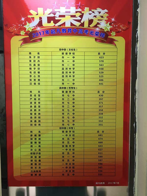 2017年起凡教育中高考光榮榜價(jià)格